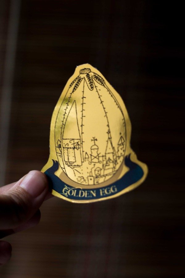 Stickers de vinilo dorado + filtro uv, resistente al agua, sol y al roce. Mide aprox.8x6,5cm.